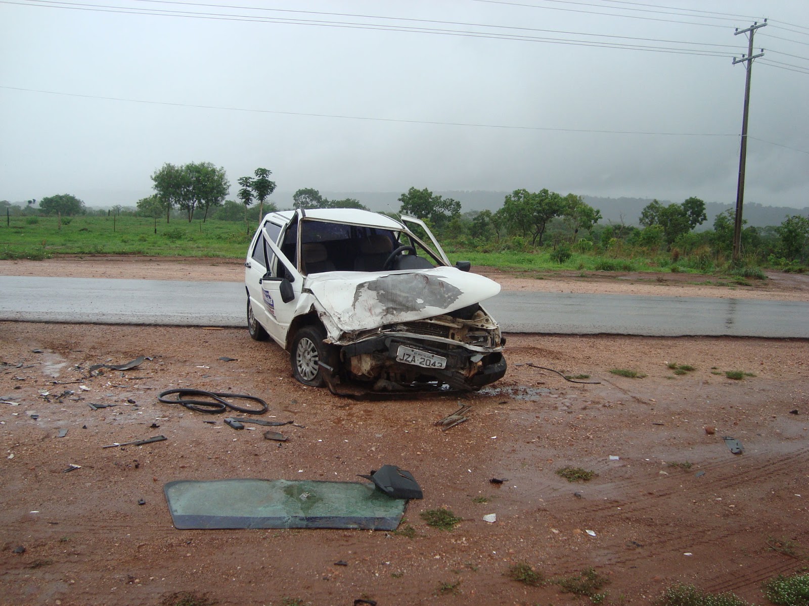 O Fiat Uno era dirigido por Roberto Marques da Silva, 26 anos, de Nortelândia, ficou com a frente totalmente destruída. No momento do acidente chovia e um dos motoristas ficou caído no chão.