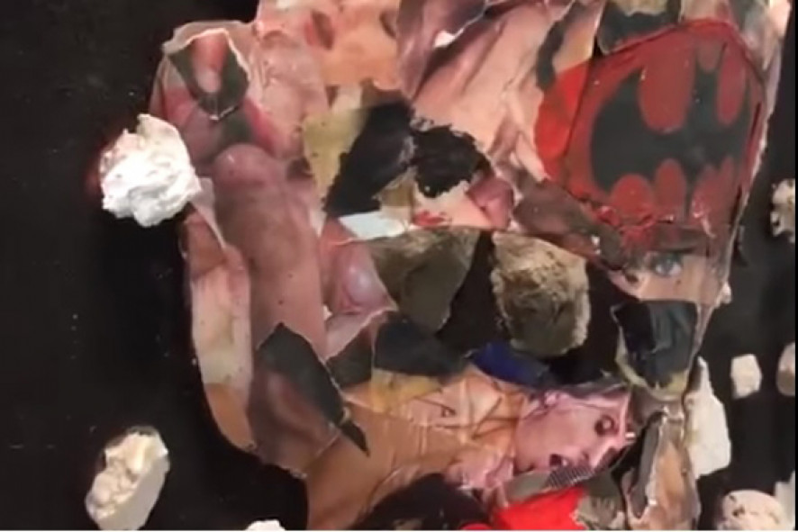 Na outra imagem, há figuras consideradas sexuais, como o retrato de um pênis, que formam uma máscara semelhante à do personagem Batman. Na obra, há a frase "Robin, afaste-se dessa droga de arte".