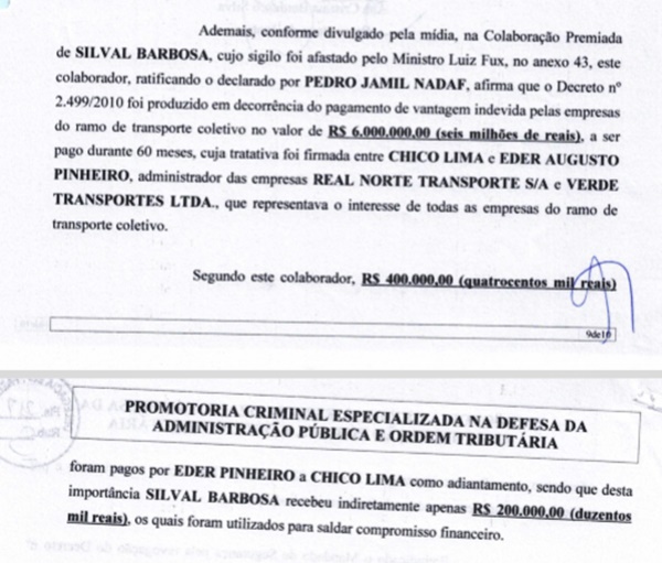 De acordo com o ex-governador, Lima realizou as tratativas com o empresário Eder Augusto Pinheiro, administrador da Real Norte Transporte S/A e Verde Transporte LTDA., que representava os interesses de todas as empresas do ramo do transporte coletivo. Eder foi um dos alvos presos na Operação, mas já liberado.