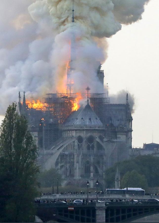 Em Paris, o fogo destruiu parte de Notre-Dame e levou 9 horas para ser controlado, causando grandes danos à catedral. Todo o telhado, a armação, parte da abóbada e a "flecha" (torre mais alta) foram destruídos. Na ocasião, turistas de Mato Grosso que estiveram na catedral lamentaram e classificaram o incêndio como "grande desastre".