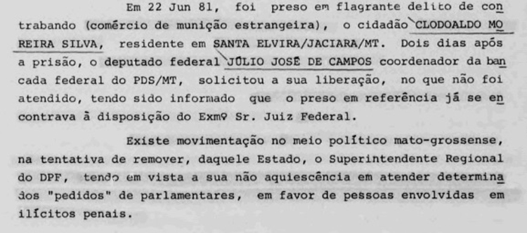É relatado que o ex-deputado federal Júlio Campos teria pedido a soltura de um homem preso pela Polícia Federal em flagrante por contrabando de munição.