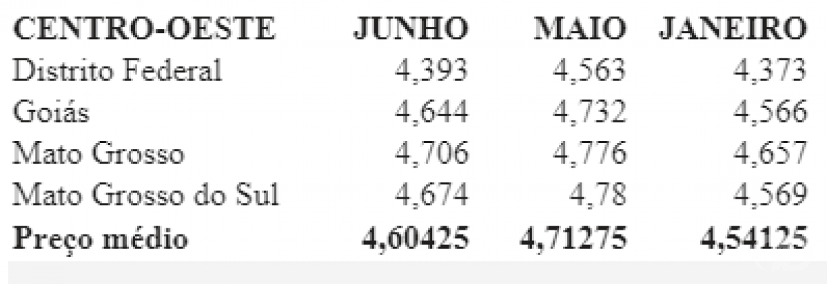 No Norte, o Acre tem o preço mais alto não só da região, como também do Brasil (R$ 5,115). O valor médio mais baixo foi verificado em Roraima (R$ 4,521).