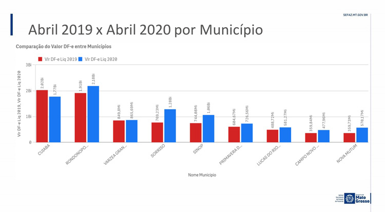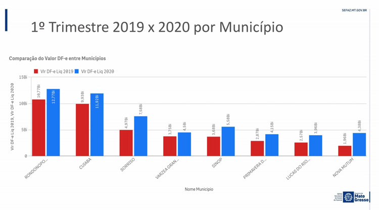 Sorriso teve incremento R$ 2,4 bilhões, sendo o faturamento do primeiro trimestre de 2019 em R$ 4,9 bilhões e em 2020, R$ 7,5 bilhões.