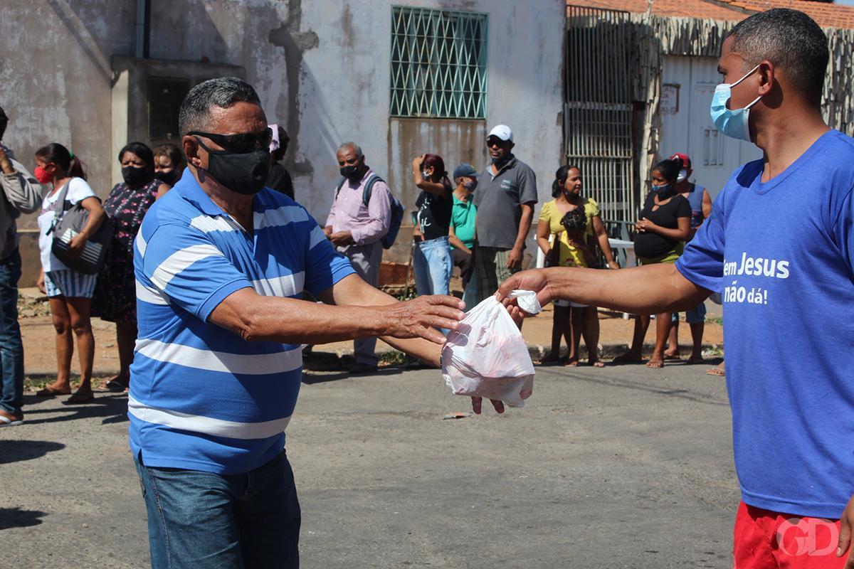 Hoje, além dos ossinhos, foram distribuídas 150 cestas básicas fornecidas por empresários e pelo estado. No dia 30 de agosto serão distribuídos 300 sacolões às pessoas cadastradas.