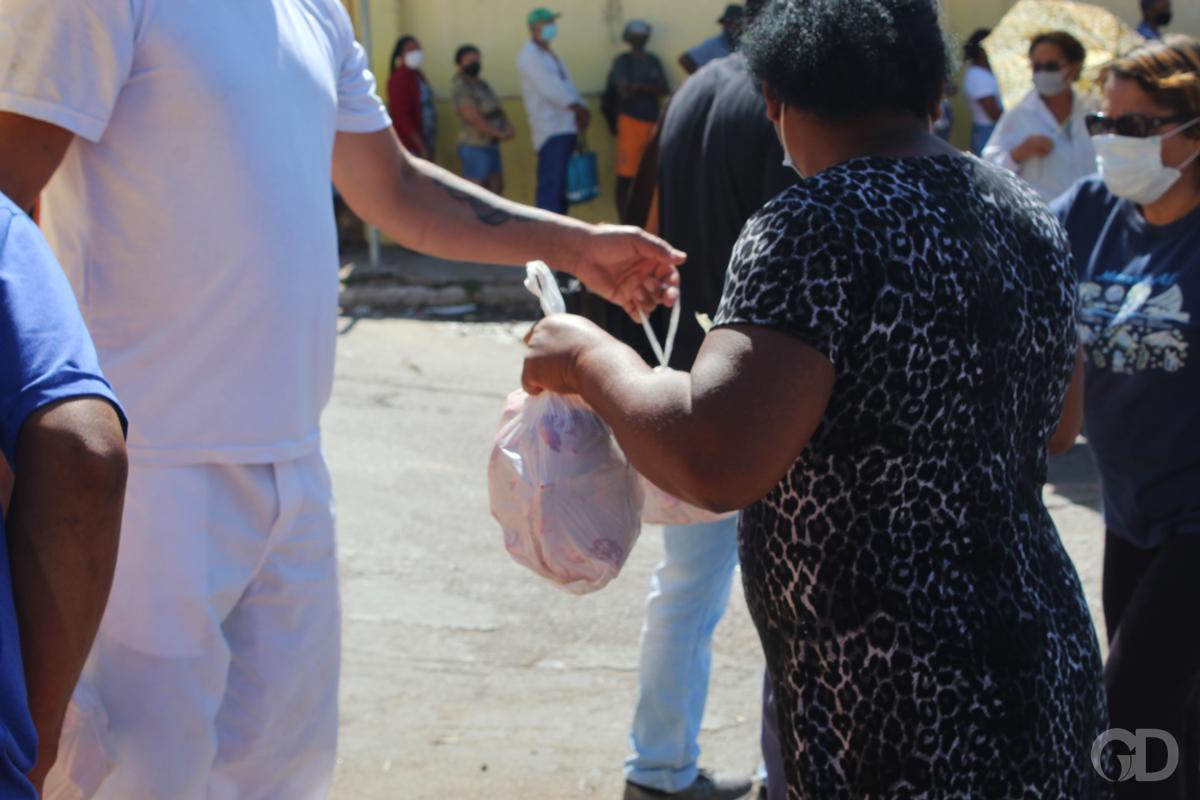Por conta da enorme demanda, a distribuição precisou passar por nova organização e cadastro de quem está na fila. Assim, além do produto animal, as pessoas recebem também alimentos entregues por variadas instituições.