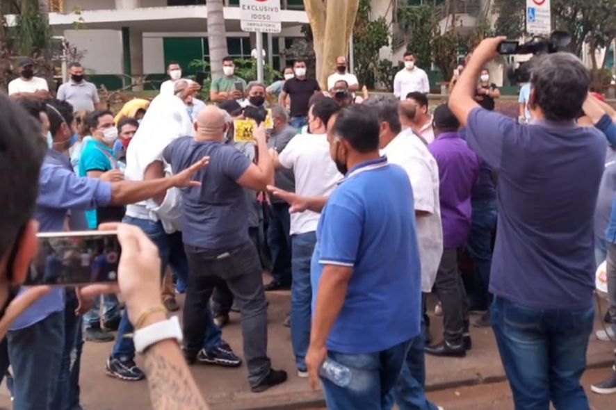 “Em vez da manifestação sobre o VLT começaram a nos ofender, tocaram musica eleitoral. Um homem com um pano branco começou a querer confusão. Veio, deu uma cabeçada em mim. Foi uma loucura”, relatou Abílio ao MidiaNews.