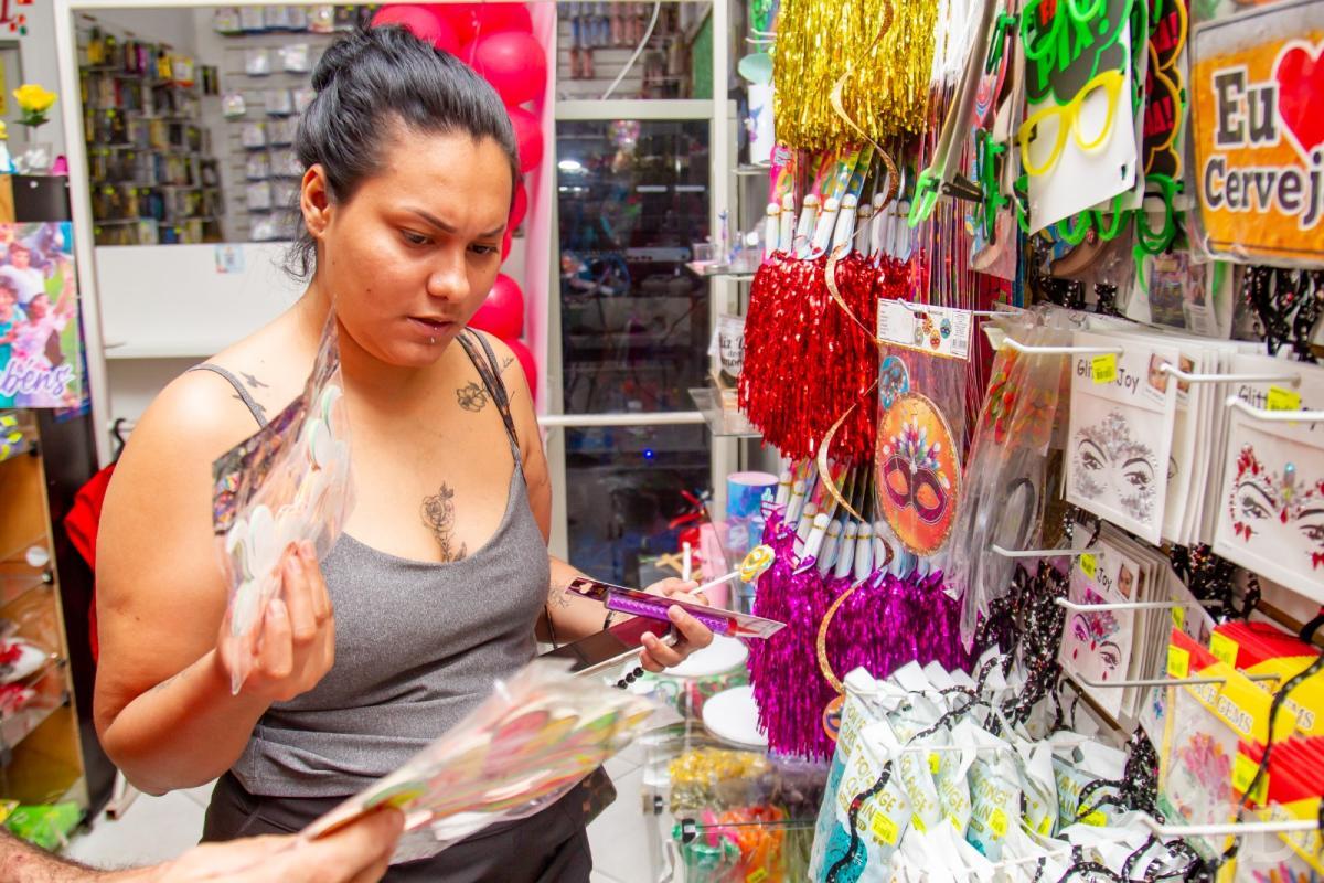 Proprietária da Fábrica Festas, Andressa Magalhães, 27, contou ao que não estava apostando muito no aumento da receita do Carnaval, isso porque nos dois últimos anos da pandemia de de covid-19 não houve a festa popular. Mas já está mais animada com o incremendo de renda.
