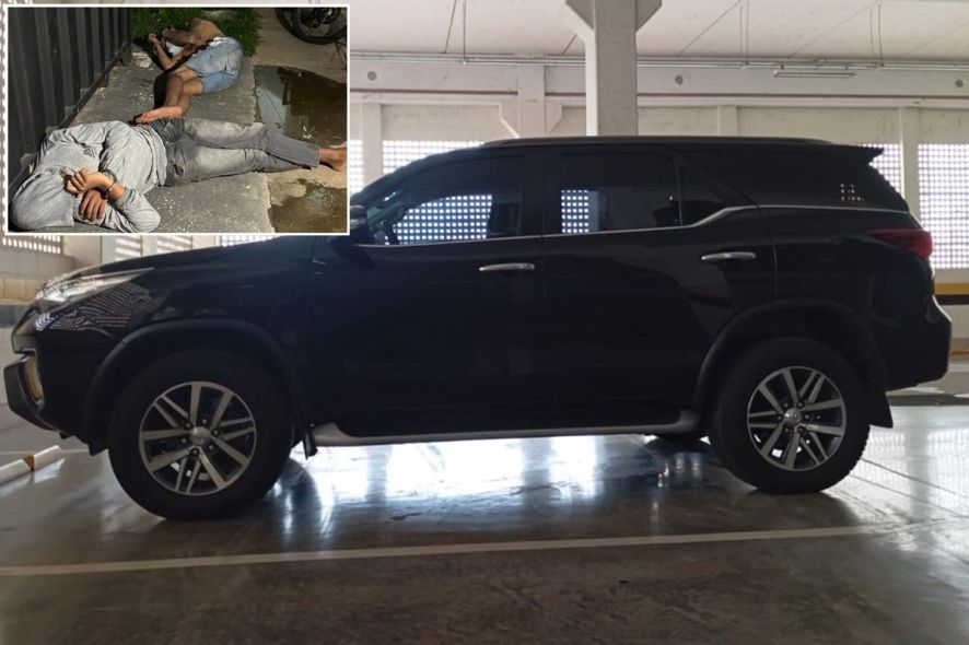 A Polícia Militar recebeu a informação de que um Pajero preto havia sido roubado e os donos do veículo sequestrados.