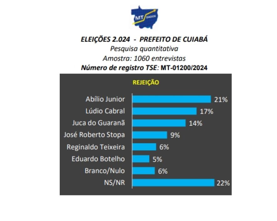 Ainda segundo levantamento, Abílio é aquele com maior rejeição entre o eleitorado cuiabano. Ao todo, 21% dos entrevistados disseram que não votariam no deputado.