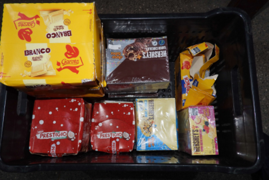 Ali foram encontrados pés de moleque, caixas de bombom Nestlé e Garoto, Kit Kat, balas, Sucrilhos, sorvete, bombom Ouro Branco, Halls, linguiça toscana, costelinha defumada e panetone, azeite de oliva, além de amaciantes Downy e desodorante Dove. Foi nesta unidade que os policiais encontraram cuecas da marca Calvin Klein.