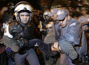 Na ocasião, cerca de cem policiais militares, a maioria da Tropa de Choque, estavam no local e houve confronto. Com balas de borracha e bombas de efeito moral, a PM perseguiu por 3 km os manifestantes. O repórter da TV Folha Felix Lima foi agredido e teve seu equipamento danificado pela Guarda Civil Metropolitana. Seis pessoas foram detidas e ao menos duas se feriram. Os detidos foram liberados no início da noite.