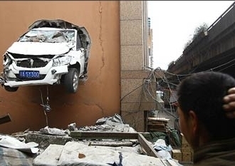 Condutor não sofreu ferimentos. Acidente ocorreu em Chongging, na China.
