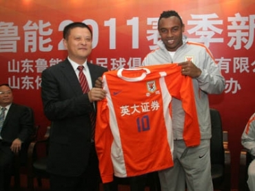Xodó das torcidas de Flamengo e Atlético-MG, Obina chegou com moral no Shandong Luneng, atual campeão chinês: após um período de treinamento na Espanha de pré-temporada, o atacante foi apresentado oficialmente nesta quinta-feira na China e recebeu a camisa 10.