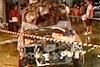Revoltados, os foliões espancaram o homem e incendiaram o carro dele. Ele teve de ser levado ao hospital, mas foi liberado e depois foi autuado em flagrante pela polícia.