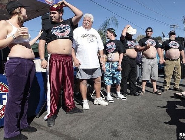 Concurso elegendo a maior pança de chope. Aposto que você imaginou um monte de homens beberrões e barrigudos, certo? É quase isso. A não ser pela presença de uma mulher.