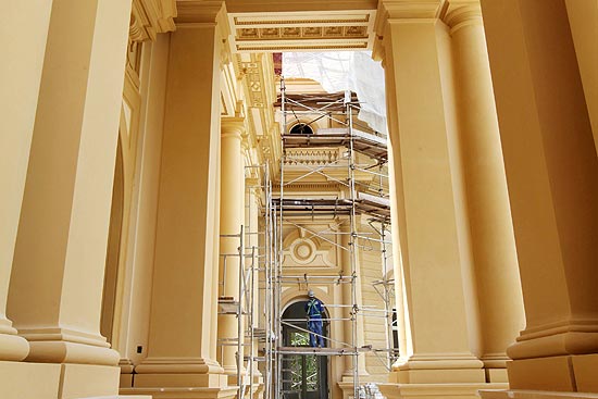 Instalações elétricas e hidráulicas também estão sendo refeitas --quem circulou pelo local nos últimos anos lembra-se dos grandiosos salões cheios de divisórias, com uma enormidade de fios embaralhados pelo chão.