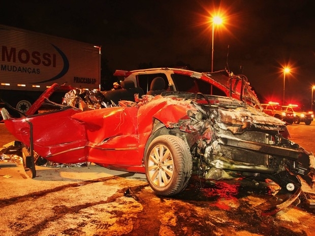 Um carro em alta velocidade bateu em um caminhão parado ao fazer uma ultrapassagem pela direita, na noite desta quinta-feira (5), na Marginal Pinheiros, em São Paulo. Com o impacto, o automóvel se partiu e um dos ocupantes morreu. Três faixas da via, no sentido Interlagos, ficaram interditadas, entre as pontes do Morumbi e João Dias, durante a madrugada desta sexta-feira (6) à espera da perícia.
