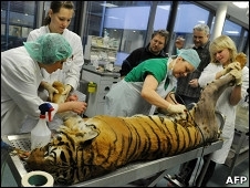 Uma tigresa de oito anos de idade foi o primeiro animal da espécie a ser operado para receber um quadril artificial. A cirurgia ocorreu em Leipzig, no leste da Alemanha.