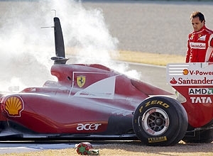 O brasileiro Felipe Massa teve problemas no motor da Ferrari F150, carro que será usada nesta temporada, durante o treino desta quinta-feira, realizado no circuito Ricardo Tormo, em Valência.
