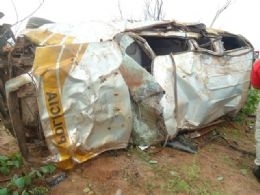 A caminhonete Blazer da Força Tática da PM era conduzida pelo soldado Carmo. Ele tentou fazer uma ultrapassagem, mas acabou perdendo o controle da viatura, que capotou.