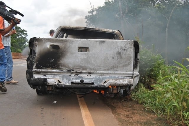 Eles usaram outra estrada vicinal para chegar na segunda fazenda. Próximo da mata, abandonaram a S-10 preta. Levando armas e os malotes com muito dinheiro, entraram na área florestal. O helicóptero da PM sobrevoou o local esta tarde, algumas vezes, com atiradores de elite mas não viram os bandidos. A polícia acredita que sejam 10 e podem ter montado acampamento na mata - assim como fez a quadrilha que assaltou bancos em Nova Mutum.