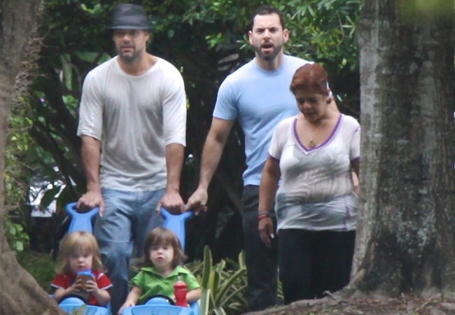 Ricky Martin foi fotografado por paparazzi enquanto curtia a companhia dos filhos gêmeos, Matteo e Valentino, em um parque de Miami, neste final de semana. De acordo com o site da agência "Brain Pix", o cantor também estava acompanhado de uma babá e de seu namorado, cujo nome prefere manter em segredo.
