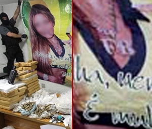 No pôster, de acordo com a polícia, a esposa do traficante ostenta no pescoço um cordão de ouro com pingentes cravejados de brilhantes com as iniciais FB. Abaixo do cartaz, ainda há os versos de um funk composto em homenagem a primeira-dama do tráfico. A letra diz: “Não olha, nem mexe, sabe quem é, é a mulher do chefe”.