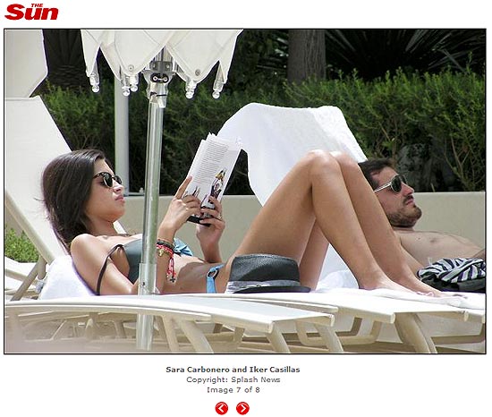 Sara Carbonero lê na beira da piscina de um hotel em Los Angeles, ao lado do namorado, o goleiro Iker Casillas