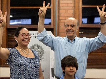 Serra votou acompanhado de sua mulher, Mônica, e de seus companheiros de coligação: o governador eleito, Geraldo Alckmin (PSDB), o atual governador Alberto Goldman (PSDB), o prefeito da Capital, Gilberto Kassab (DEM), e o senador eleito por São Paulo Aloysio Nunes (PSDB).