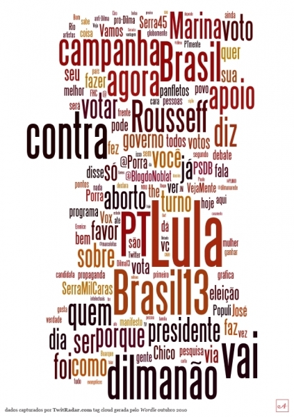 As palavras mais associadas em outubro a Dilma Rousseff (PT) e José Serra (PSDB) no Twitter foram termos ligados a correntes contrárias às campanhas dos dois candidatos à Presidência, indica um levantamento realizado pela agência de marketing para a internet Alfaiataria Digital.