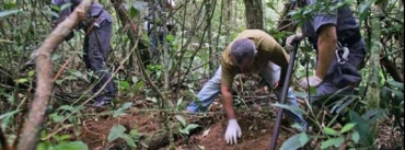 Os irmãos do homem que estava sumido continuaram as buscas e no sábado á tarde encontraram um local, a cerca de 200 metros da ponte, onde a terra estava fofa e havia marcas de cal. Eles acionaram a polícia e a Perícia Técnica, junto com os irmãos da vítima, cavaram e localizaram o corpo, sem a cabeça, enterrado junto com cal.