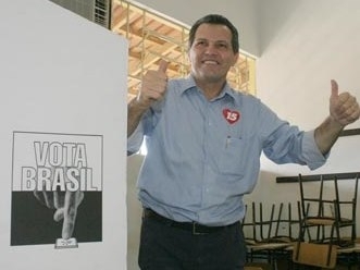 O candidato à reeleição Silval Barbosa (PMDB) foi o primeiro, entre os 4 pleiteantes ao Palácio Paiaguás, a votar neste domingo (3). Ele chegou à Escola Estadual Antônio Ometo, em Matupá, acompanhado de sua esposa Roseli Barbosa, por volta das 8h40, e creditou o seu voto na sessão 54, zona 033. A manutenção do título dele na cidade se deve ao fato de Silval ter sido prefeito de Matupá por dois mandatos e ter iniciado a sua carreira política no município do Nortão. "Meu coração está batendo 15 por 15, estou confiante no primeiro turno"