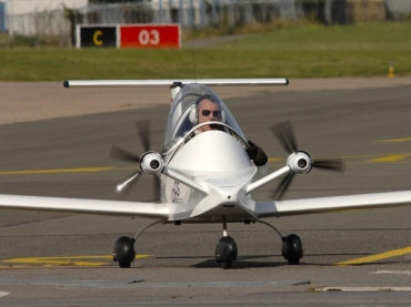 Avião elétrico Cri-Cri se prepara para decolar em aeroporto de Paris. Sua bateria de lítio dá 30 minutos de autonomia de voo.