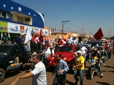 A presidenciável Dilma Roussef (PT) chegou a Rondonópolis nesta quarta-feira (25), na primeira vinda a Mato Grosso durante a campanha, com quase uma hora de atraso, no aeroporto maestro Marinho Franco. Antes de iniciar a carreata, a petista disse que estará no palanque de todos aqueles apóiam a sua candidatura.