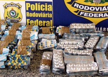 A Polícia Rodoviária Federal aprendeu nesta quarta-feira na BR-163, na cidade de Coxim (MS), 5.860 comprimidos de medicamentos. Os remédios estavam sendo transportados em um ônibus que seguia para o Pará. Durante a revista, os policiais encontraram comprimidos de Cytotec, Mintagras e Pramil, em uma mochila, no eixo traseiro do veículo.
