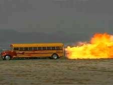 Os alunos não têm mais desculpas para chegar atrasado à escola nos Estados Unidos... Isso porque o americano Paul Stender construiu um ônibus escolar movido a jato que atinge 590 km/h!