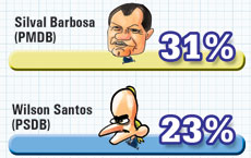 Silval Barbosa (PMDB) impõe 8 pontos percentuais de vantagem sobre o 2º colocado tucano Wilson Santos.