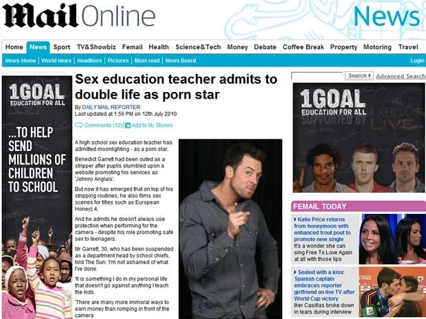 Ele disse para a imprensa britânica que não se "envergonha do que fez". Segundo a reportagem, Garrett começou a estrelar filmes pornôs quando ainda era estudante, ganhando 300 libras por cena. O professor tinha sido contratado por uma escola de Ilford, no Reino Unido, em 2008.