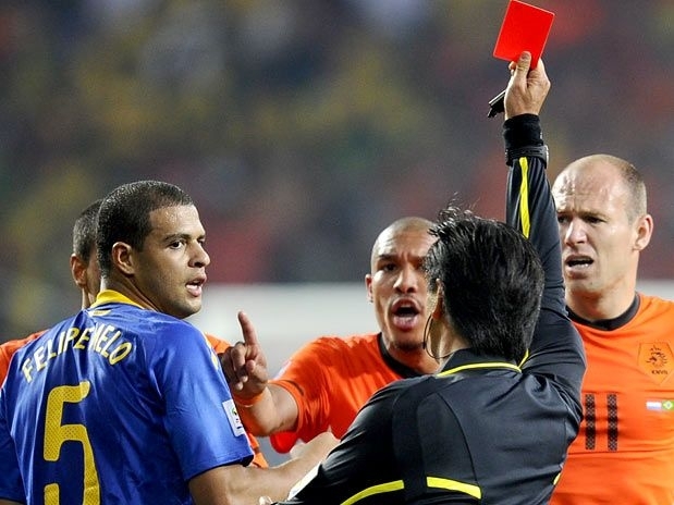 No jogo contra os holandeses, o volante começou bem, dando uma assistência para Robinho abrir o placar do duelo. No segundo tempo, no entanto, fez um gol contra e ainda foi expulso infantilmente, após pisar no atacante Robben, quando a equipe de Dunga já estava em desvantagem, recebendo cartão vermelho direto do árbitro japonês Yuichi Nishimura.