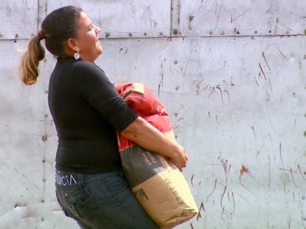 Mulheres carregam saco de cimento de 50kg e passam mal em concurso