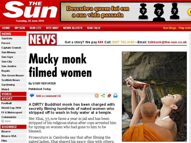 Um monge budista pode pegar um ano de prisão por filmar secretamente centenas de mulheres que se despiam durante uma celebração no templo de Phnom Penh, no Camboja.