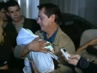 O pai de Eliza deixou o abrigo com a criança no colo, acompanhado de sua mulher. O bebê será levado pelo pai da jovem à Foz do Iguaçu, onde vive.