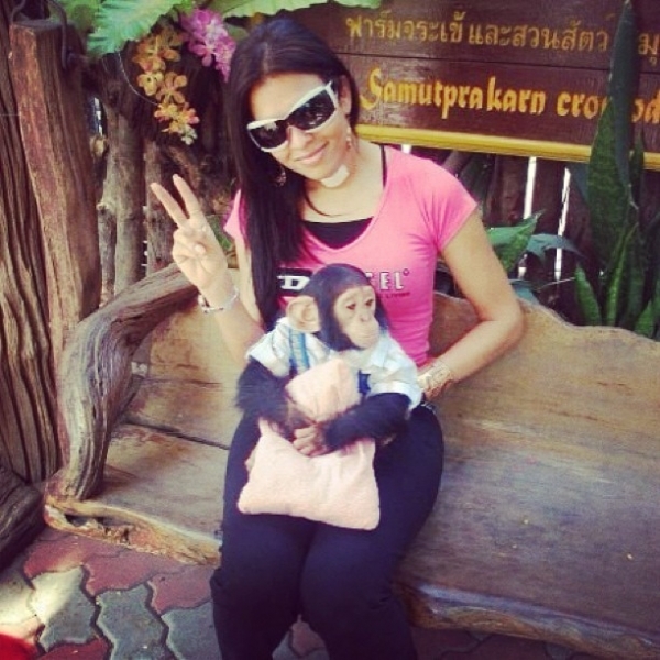 Ariadna posa com um filhote de macaco