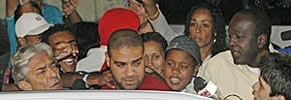 Adriano chegou à delegacia por volta das 16h30 acompanhado do seu advogado, Adilson Fernandes. Em seguida, eles entraram por uma porta lateral da delegacia sem dar entrevista. Na chegada, o atacante foi cercado por jornalistas e torcedores. Ele apenas cumprimentou os fãs.