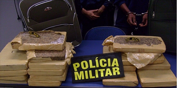 Dois jovens que moram em Cuiabá foram presos no início da noite desta quarta-feira em Campo Grande, Mato Grosso do Sul, transportando 36,5 quilos de maconha. A droga estava escondia em duas malas.