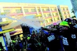 “Água, sabão e creolina. Vamos lavar o TRE para que neste ano tenhamos uma eleição limpa”, dizia o representante do Movimento de Combate à Corrupção, Antônio Cavalcante Filho, o Céará, enquanto a lavagem era feita.