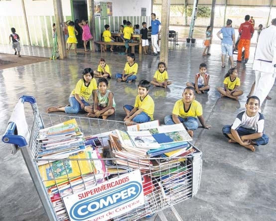 Os livros entregues pelo MEC ainda estão nas caixas porque não há local adequado para colocá-los. "Os professores só trabalham com esses livros na sala de aula", explicou a coordenadora da escola, Maria Aparecida de Almeida.
