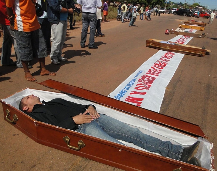 Vereador por Primavera do Leste, Messias di Caprio (PP) deita em caixão na rodovia para protestar contra o alto índice de acidentes na MT-130 e pede recapeamento do trecho que liga até Poxoréu