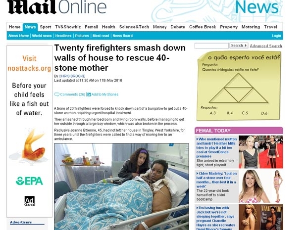 Mãe de três filhos, Joanna disse que ficou paralisada em dezembro de 2008 após contrair uma infecção bacteriana, e que acabou ganhando mais peso depois disso. Ela tinha ajuda de equipes de serviço social do governo.
