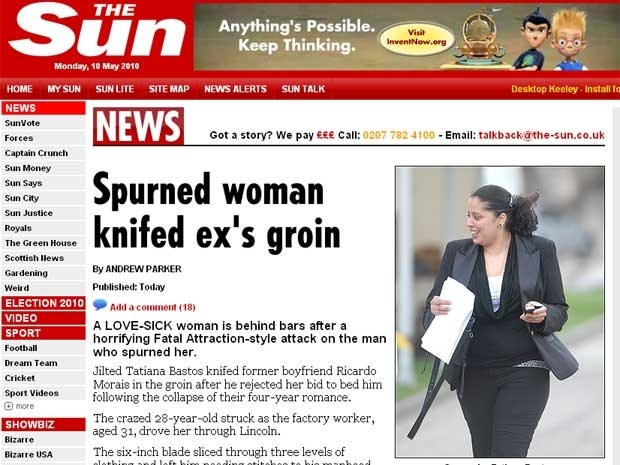 Uma americana rejeitada pelo ex-namorado o atacou na virilha, na tentativa de cortar seu pênis.